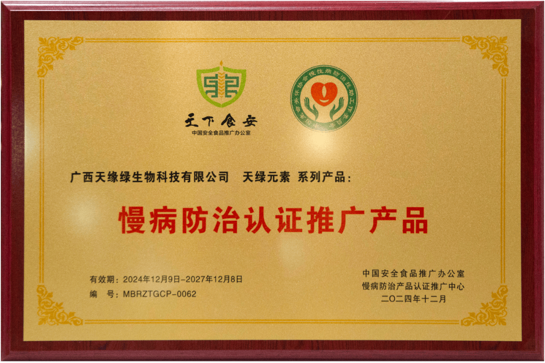 天綠元素系列產(chǎn)品此次榮獲“慢病防治認(rèn)證推廣產(chǎn)品”殊榮,是廣西天緣綠科技集團(tuán)長期努力與堅持的結(jié)果。天緣綠集團(tuán)將以此為契機(jī),繼續(xù)秉承“心懷天下 以人為本 關(guān)愛生命”的理念,為廣大消費(fèi)者提供更多優(yōu)質(zhì)、健康的產(chǎn)品與服務(wù)。同時,我們也期待與更多志同道合的合作伙伴攜手共進(jìn),共同為人類的健康事業(yè)貢獻(xiàn)力量。