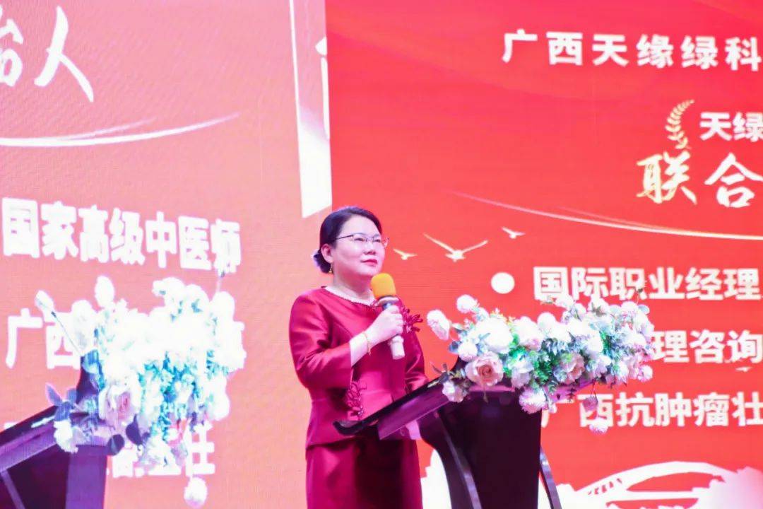慶典現(xiàn)場(chǎng),燈光璀璨,嘉賓如云。廣西天緣綠科技集團(tuán)名譽(yù)董事長、天緣綠事業(yè)領(lǐng)航人、天綠元素品牌創(chuàng)始人李玉強(qiáng) 先生, 廣西天緣綠科技集團(tuán)運(yùn)營總裁、天綠元素品牌聯(lián)合創(chuàng)始人、廣西藥學(xué)會(huì)理事、廣西抗腫瘤壯藥專業(yè)委員會(huì)副主任郭陽 女士,藥學(xué)博士后導(dǎo)師、廣西藥學(xué)會(huì)名譽(yù)理事長劉華鋼 博士,廣西醫(yī)藥商會(huì)執(zhí)行會(huì)長兼黨委書記黃建國 先生,北京康芬中醫(yī)藥研究院首席科學(xué)家、北相學(xué)派生物學(xué)家馮勁松 教授,廣西區(qū)市場(chǎng)監(jiān)管局主管的廣西打假扶優(yōu)信息協(xié)會(huì)古平仁 會(huì)長,南寧市企業(yè)和企業(yè)家聯(lián)合會(huì)陳志聰 會(huì)長等領(lǐng)導(dǎo)和嘉賓、集團(tuán)全體員工及經(jīng)銷商出席慶典,共同見證并慶祝這一榮耀時(shí)刻。